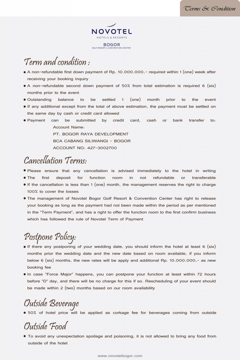 Semua paket pernikahan kami sudah termasuk ruang untuk 1 malam menginap di Novotel Bogor.